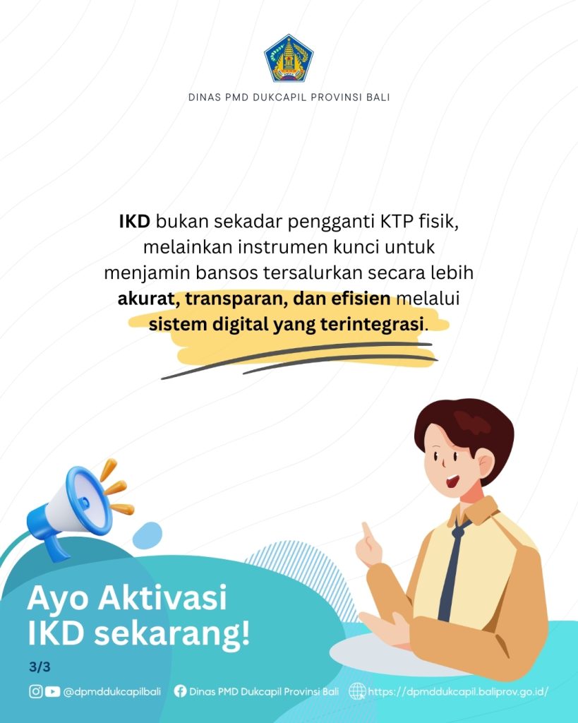 Berita Update FASILITASI PELAYANAN ADMINISTRASI KEPENDUDUKAN Pengumuman IKD dan Bansos admin 15 March 2026 Post navigation Previous Rapat Tim Percepatan Penurunan StuntingNext Kunjungan Kerja (Konsultasi/Koordinasi) Komisi I DPRD Kabupaten Jembrana Related Stories Ayo Aktifkan IKD-mu! Berita Update FASILITASI PELAYANAN ADMINISTRASI KEPENDUDUKAN Pengumuman Ayo Aktifkan IKD-mu! 15 April 2026 Kegiatan Bina Posyandu Angkatan ke-2 Tahun 2026 Berita Update KESWADAYAAN DAN LEMBAGA KEMASYARAKATAN Kegiatan Bina Posyandu Angkatan ke-2 Tahun 2026 13 April 2026 Kegiatan Aksi Sosial TP Posyandu Provinsi Bali “Membina dan Berbagi” Tahap I Berita Update KESWADAYAAN DAN LEMBAGA KEMASYARAKATAN Kegiatan Aksi Sosial TP Posyandu Provinsi Bali “Membina dan Berbagi” Tahap I 31 March 2026