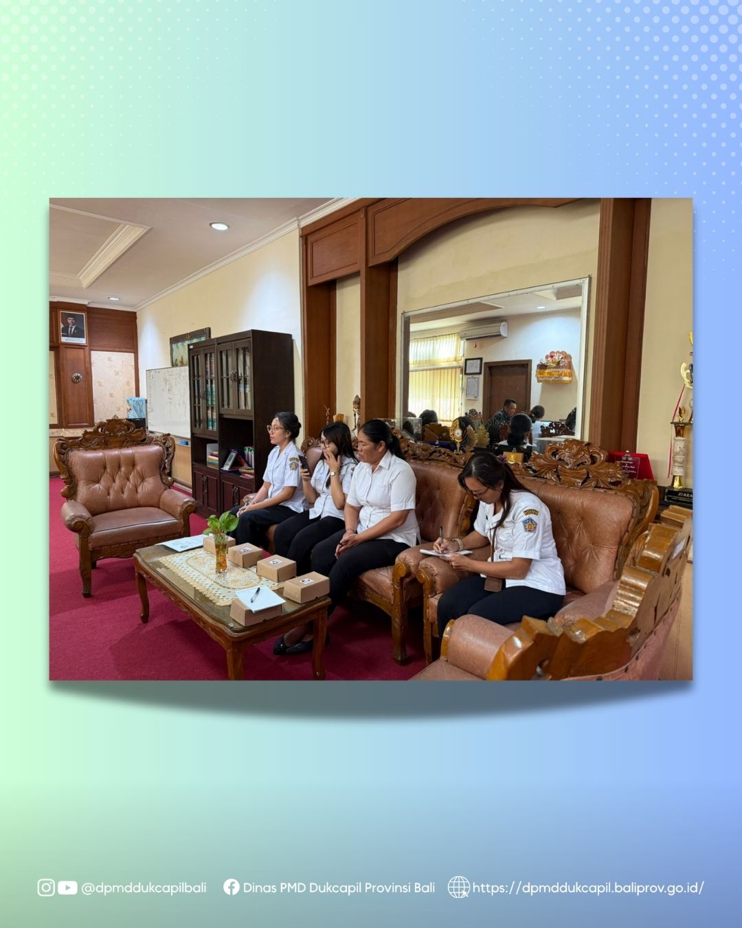 Rabu, 21 Januari 2026, Biro Umum Sekretariat Daerah Provinsi Bali yang dipimpin oleh Arsiparis Ahli Madya melaksanakan kegiatan Monitoring Hasil Pengawasan Kearsipan Tahun 2025 dan Pembinaan Kearsipan Tahun 2026 pada Dinas PMD DUKCAPIL Provinsi Bali.